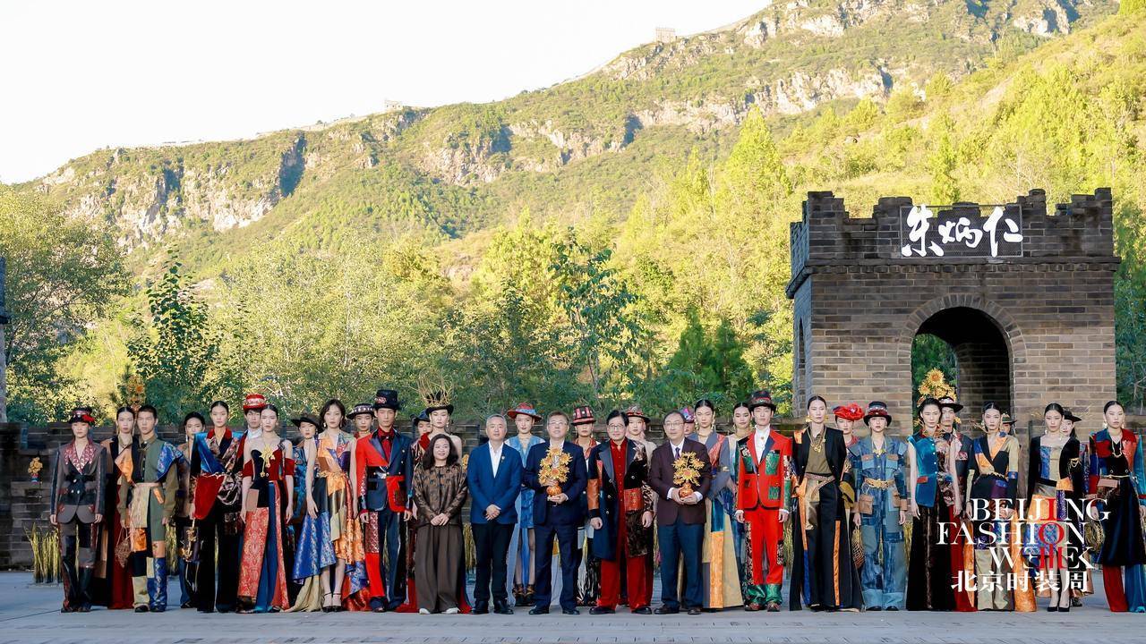 雄伟壮丽的司马台长城脚下,北京时装周的闭幕大秀缓缓拉开,模特们身着以匠人工装为原型重新解构的作品依次登场。工装立体袋、撞色走线与面料拼接的设计,模拟出工装的补丁效果。礼帽、臂环、手袋等配饰则用铜丝金属精心打造,透出刚柔并济的独特质感。古老城墙与现代时装形成“碰撞”,历史与当代仿佛完成了一场无声的对话。