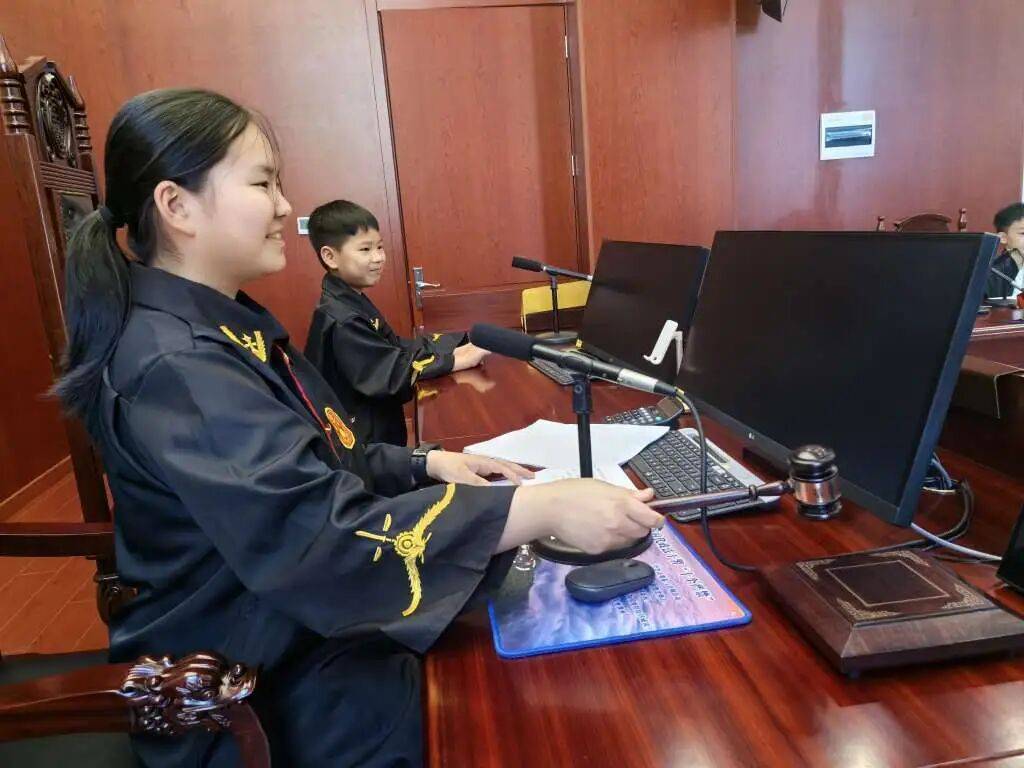 近日,长街司法所联合长街法庭将法治课堂搬进庄严肃穆的法庭,开启沉浸式学法。活动伊始,法庭工作人员带领孩子们参观法庭布局,讲解法槌的使用规则及审判流程,让大家直观感受司法工作的严谨与规范。随后,开启一场别开生面的“模拟审判”。模拟案件启用未成年人网络诈骗场景,孩子们分别化身审判长、审判员、书记员、原告、被告及辩护人,在工作人员的专业指导下,严格遵循真实庭审程序。这次活动不仅让孩子们精准掌握了庭审流程,体会到庭审程序背后的秩序与公正,更打破对“法律”的陌生感,从“敬畏”到“理解”再到“运用”。